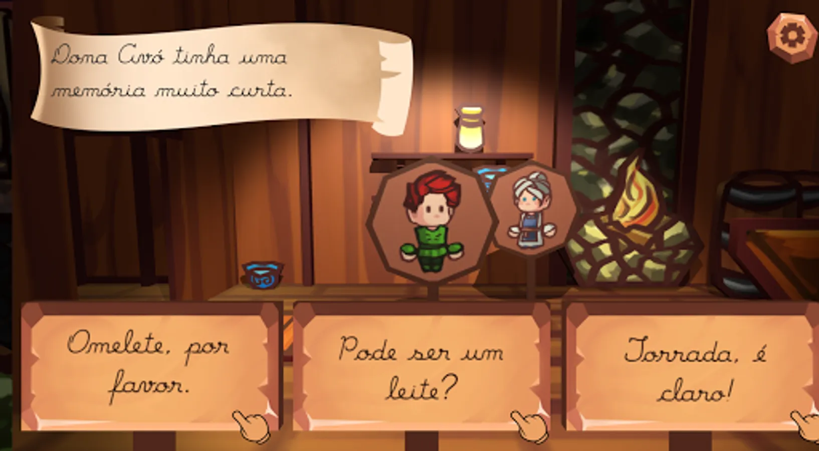 The game is easy to play: just use the finger to pick dialogue choices and interact with the world. The game is separated in chapters and it's possible to pick the font (cursive or print writing) and the language (English or Portuguese), fitting the children and parents needs and wishes.
