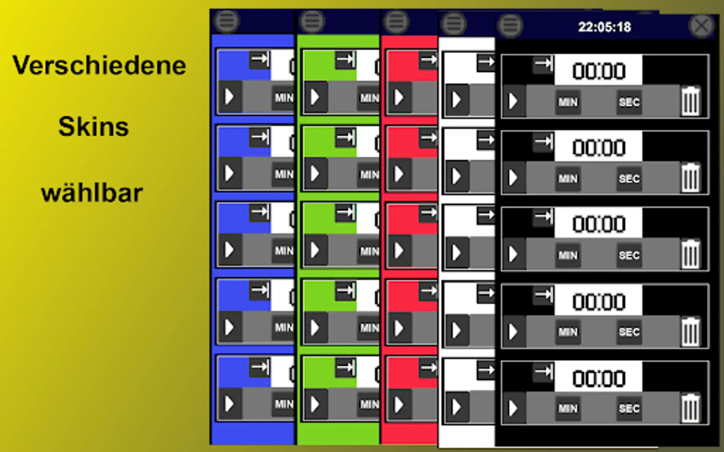 This TIMER offers you a lot. Regardless of whether you are looking for a good kitchen TIMER or a TIMER for other tasks. Lots of settings and different skins.