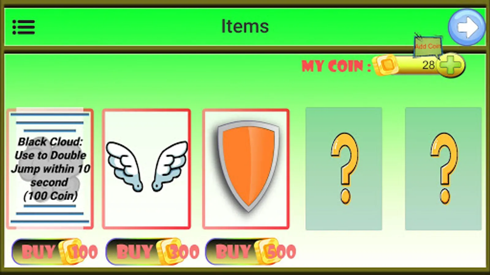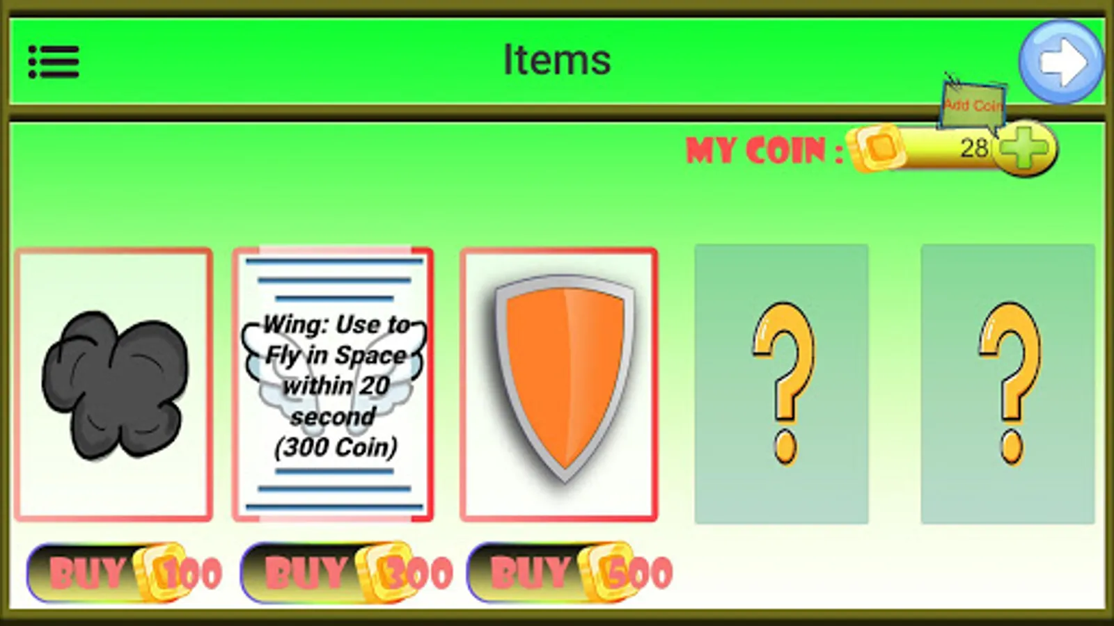 + Change characters, buy and use items to help us get higher scores while playing (it will be very helpful for conquering high scores).