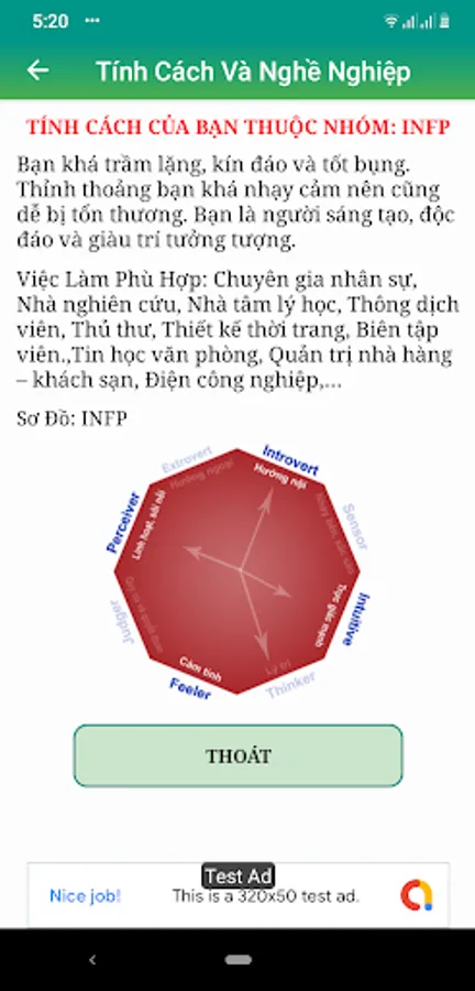 ✔ This is a completely free application, The App helps you with a Career Quiz to help you find the right career direction by finding out what activities you are most interested in, pointing out a number of public areas General job is within your professional capacity. Test career interests. This is a highly reference tool and is not a substitute for a professional career counseling process. Helps young people find the right career to be able to stick around for a long time.