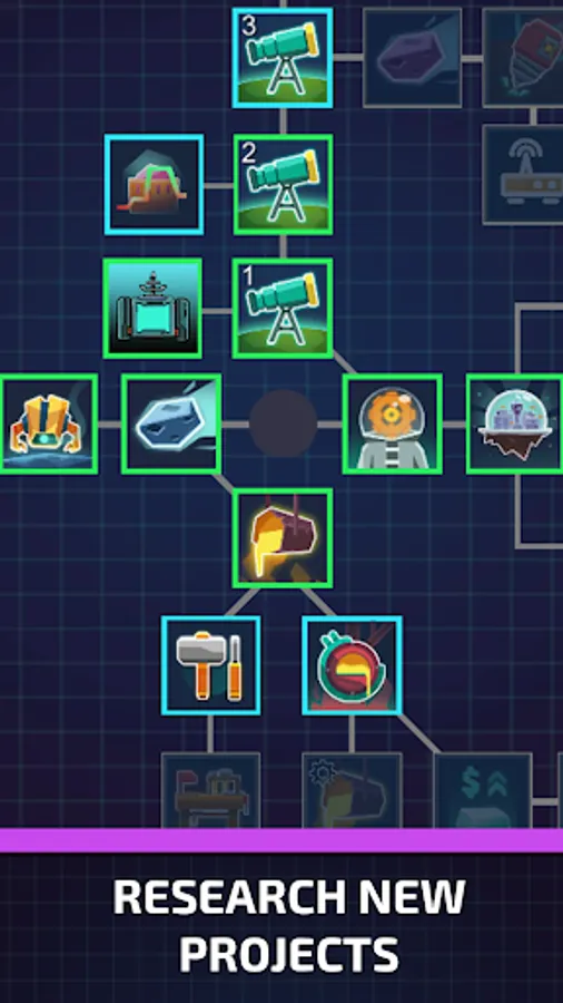 ● Evolve your digging strategy! Research special projects to improve your output!
