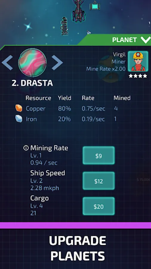 ● Upgrade mining planets to increase your ore capacities