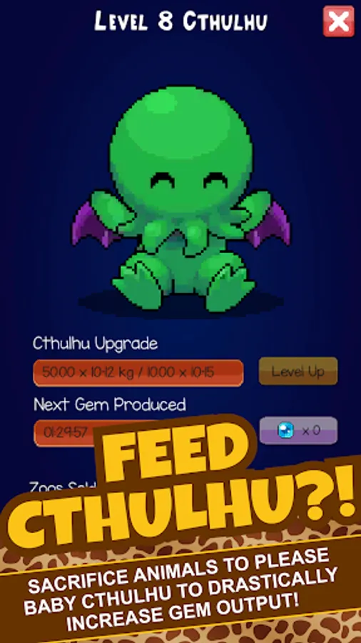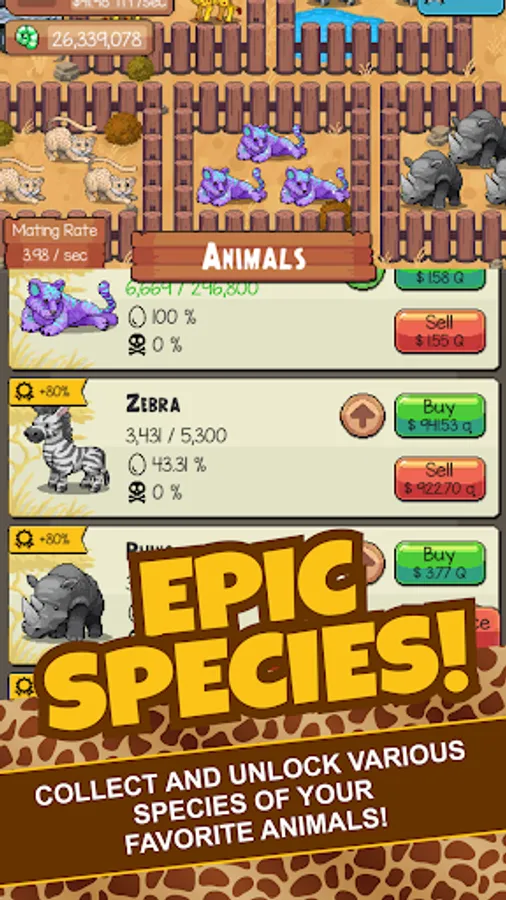 • Manage a zoo and tap to invest in improvements that can permanently increase zoo animals’ birth rate