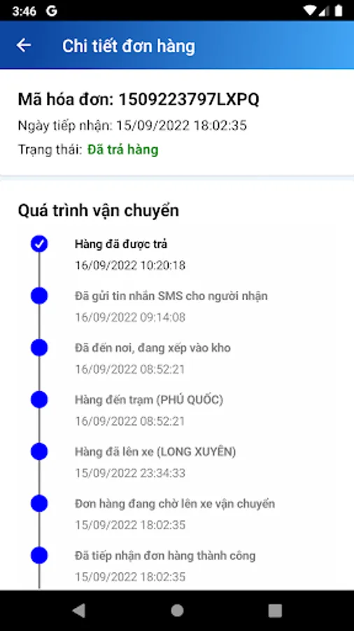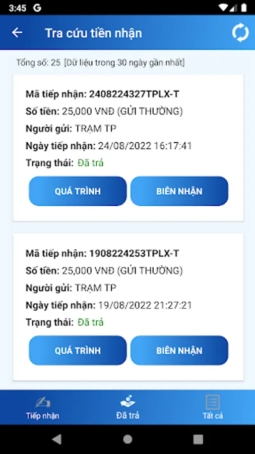 => Xem lại biên lai, thông tin chi tiết của từng vận đơn.