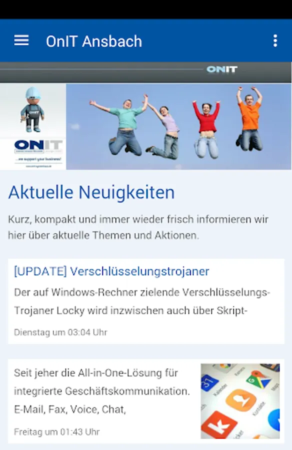 Now there Onit system house Ansbach as the official app for Smartphone's! All news, photos, events and dates as land directly in your pocket. Whenever there is something new on your phone's ringing. And because a smartphone is simply a phone, a button can be equal to make a connection. The Onit App house system always ensures a direct line.