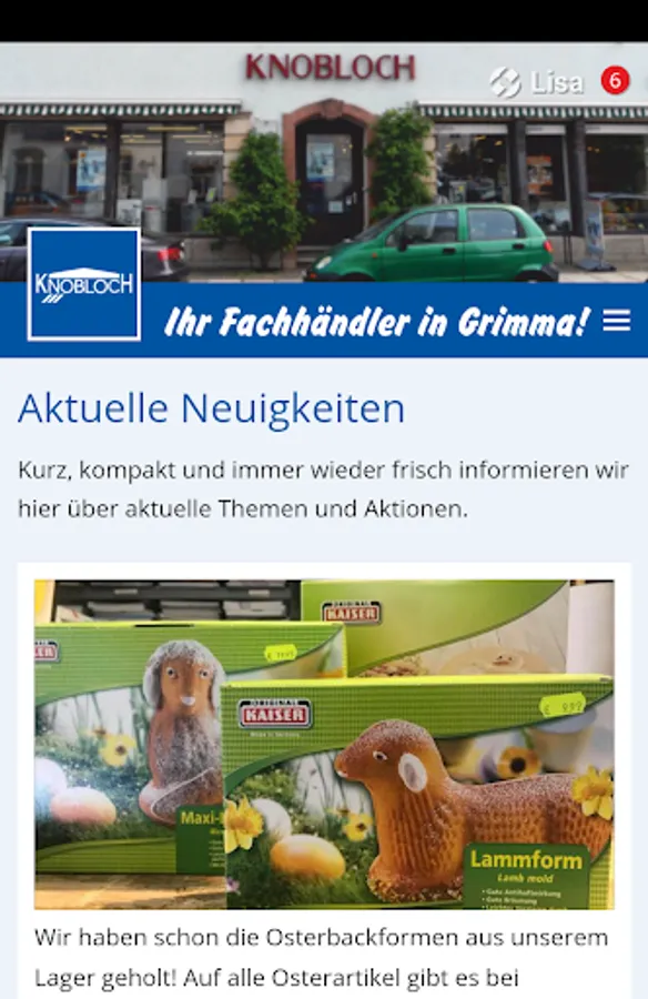 KNOBLOCH - now available as an app! Offers, promotions and news from the world of housewares and electrical appliances! With our app there is always a direct line to us. There's nothing faster. Always Current actions from all product areas. Our app is the fastest way to stay up to date. We look forward to seeing you in our shop in Grimma! News from Grimma and a live view of the Grimmaer market are also included.