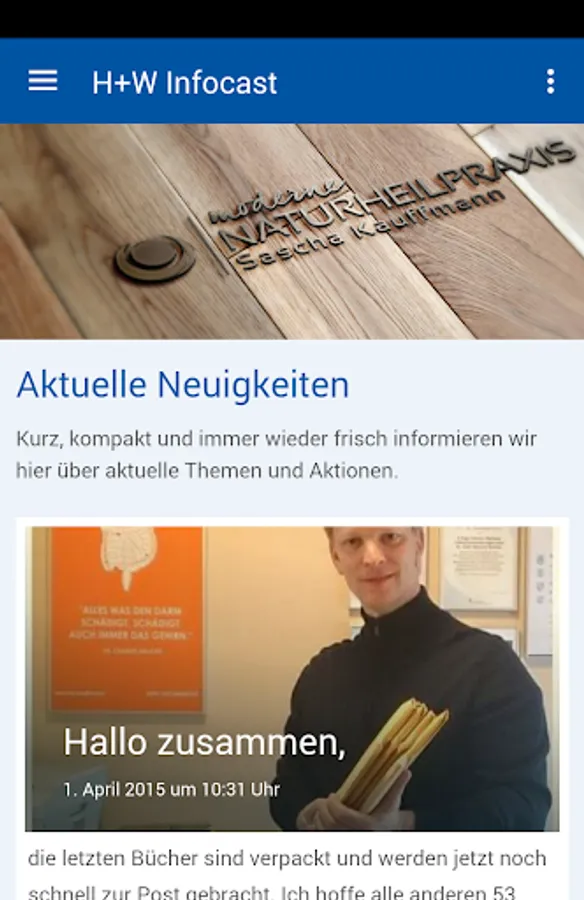 Now there is the official app for Smartphone's of Naturopaths Sascha Kauffmann. I use this method in order to inform you of news, trivia and seminar dates from the field of medicine and naturopathy. In addition, the app offers the opportunity to look directly at individual Videocast's. Do not miss allowed to do that exciting memory game "Bodymemo"! Whenever there is something new to ring's on the smartphone. And because a smartphone is just a phone, can be a button equal to establish a connection. The HP Kauffmann app always provides a direct line.