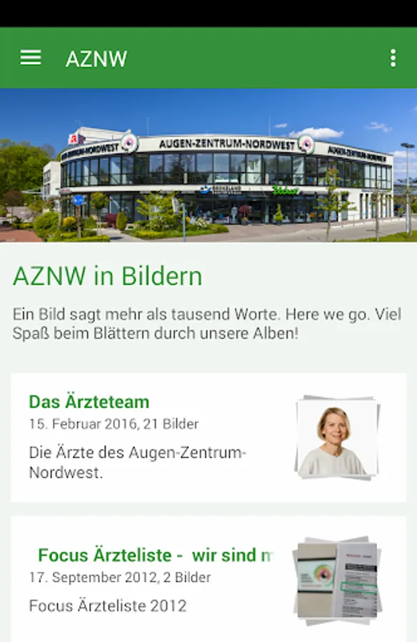Eight different locations and the entire spectrum of modern ophthalmology. The Eye Center NW is an eye care institute in Germany and is now bringing all the news and app via home. All photos, events, dates and tips for eye health land as directly on the smartphone. And because such a device is also just a phone, a button can make the same connection. The Eye Center NW app thus ensuring always a direct line to our team.