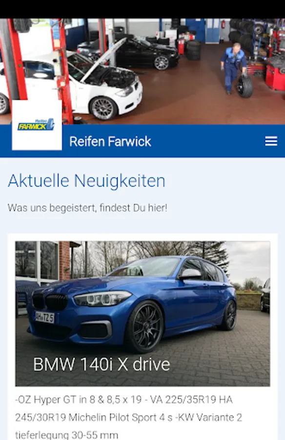 Now there is an official app for tires Farwick's smartphone! All news, photos, events and dates as land directly in your pocket. Whenever there is something new on your phone's ringing. And because a smartphone is simply a phone, a button can be equal to make a connection. The tires Farwick App always ensures a direct line.