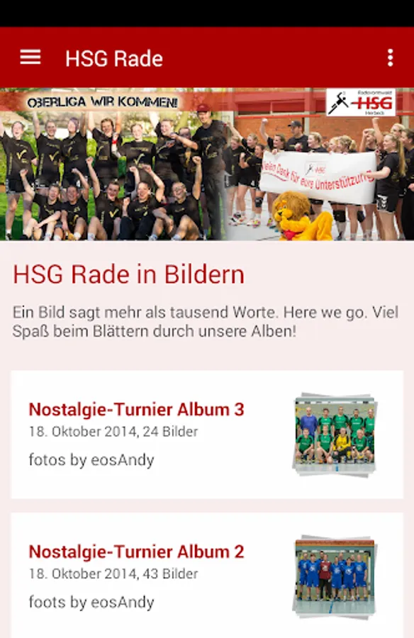 HSG Rade! The official smartphone app is here! Whether news, photos, events and dates, all lands right in your pocket. Stay up to date with push notifications. Contact the back there is also the simple touch of a button. This app connects people.