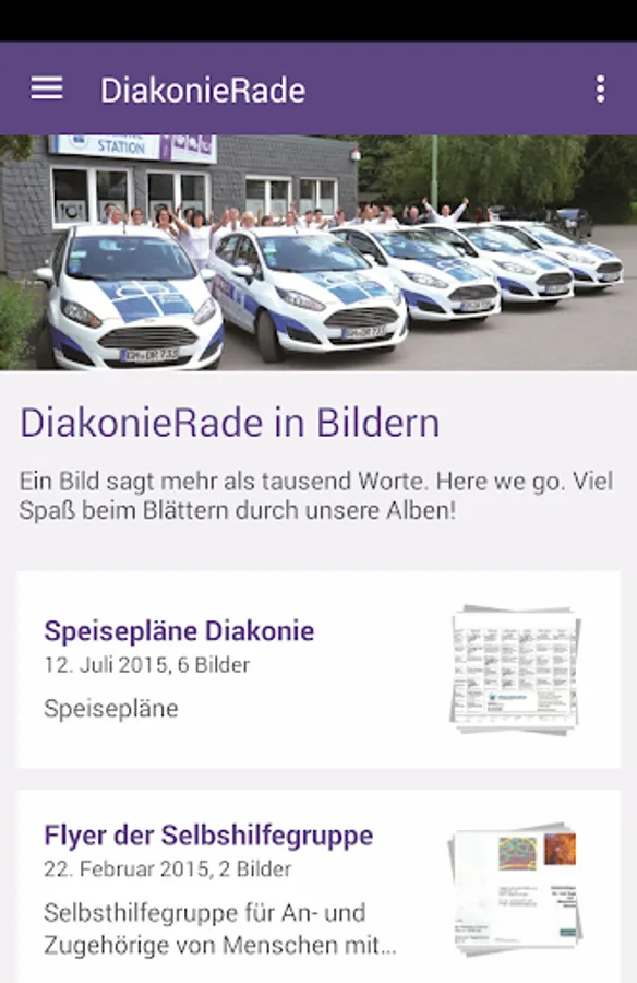 Always and everywhere: DiakonieRade now available on your smartphone! News, photos, events and dates always land right in your pocket. Updates instant notification on your smartphone appears. Contact the back there is also the simple touch of a button. This app connects people.