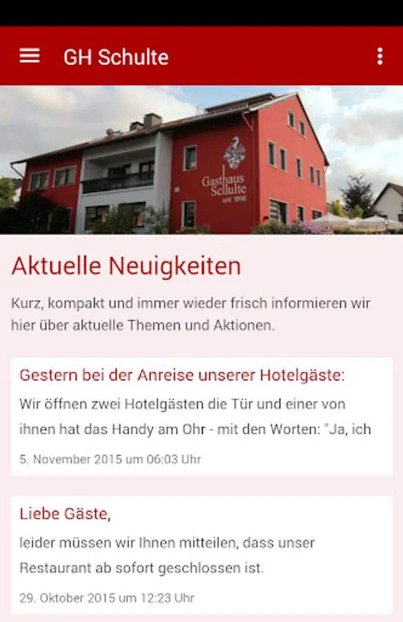 Now there's Gasthaus Schulte as the official app for Smartphone's! All news, photos, events and dates land so directly in your pocket. Whenever there is something new that's ringing on your phone. And because a smartphone is just a phone, a button can be equal to establish a connection.