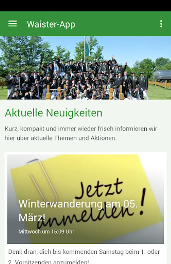 Now there is the official app for Waister's smartphone! All news, photos, events and dates of the shooting club Waister bachelors Ochtrup land so directly in your pocket. Whenever there is something new that's ringing on your phone. And because a smartphone is just a phone, a button can be equal to establish a connection. The Waister app always provides a direct line.