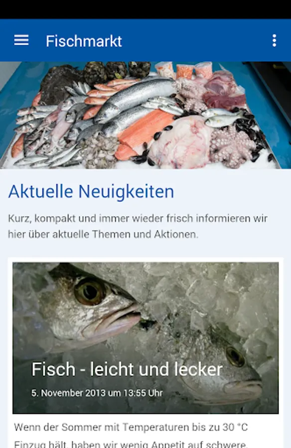 Now there's fish market as official app for Smartphone's! All services Daily deals, news in our product range, you will instantly in your pocket. And because a smartphone is just a phone, a button can be equal to establish a connection. The Fish Market app always provides a direct line.