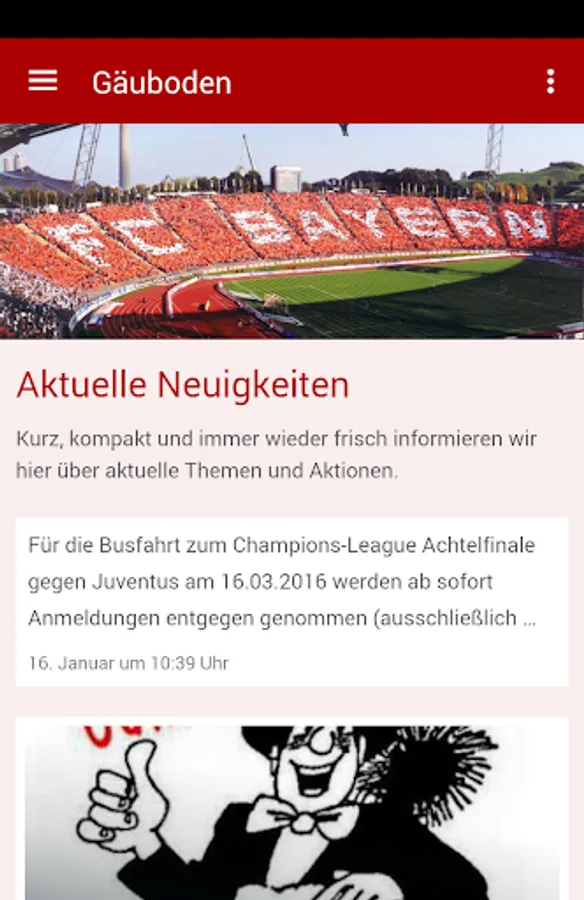 Now there is the FC Bayern Fan Gäuboden eV as the official app for Smartphone's! All news, photos, events and dates as land directly in your pocket. Whenever there is something new on your phone's ringing. And because a smartphone is simply a phone, a button can be equal to make a connection. The App Gäuboden always provides a direct line.