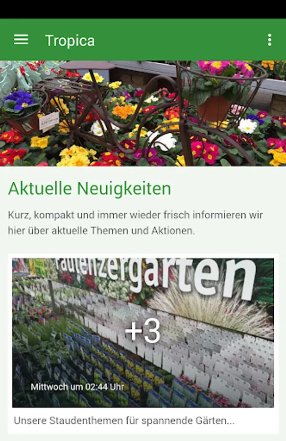 Now there is an official app for Tropica's smartphone! All news, photos, events and dates as land directly in your pocket. Whenever there is something new on your phone's ringing. And because a smartphone is just phone also, can equal a touch of a button connect. The Tropica App always provides a direct line.
