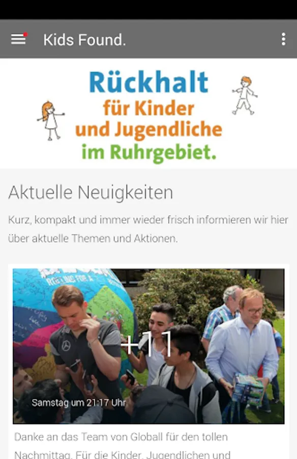 Immediately there Kids Found. as a separate app in the store! Whether news, photos, events or appointments, everything ends up directly in your pocket. Thanks to push notifications to stay up to date. The contact back there also, simply by pressing a button. This app connects people.