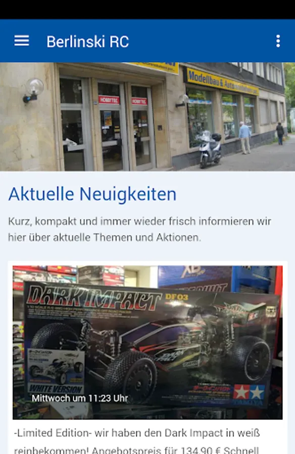 From the model center Berlinski is now the official app for smartphone and tablet. So that one is not only about all the products of the largest Model shops in Germany, but may also order this thanks to the integrated online shop. Models, drives, battery technology and accessories - here's something for every taste.