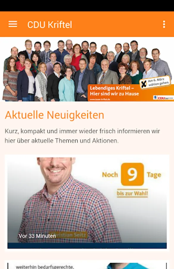Now there is the CDU's Kriftel as the official app for smartphone! All news, photos, events and dates as land directly in your pocket. Whenever there is something new on your phone's ringing. And because a smartphone is simply a phone, a button can be equal to make a connection. The CDU Kriftel App always provides a direct line.
