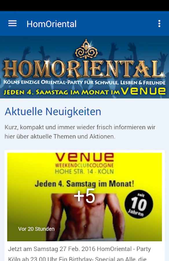 The HomOriental held every 4 Saturday of the month at the VENUE - weekendclubcologne cologne instead. The VENUE is located on the High Str 14 50667 Cologne. The VENUE is part of the Heart of Cologne.