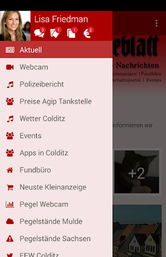 News from our town, inserts the fire and events, webcam, Tourist Information, Business Portal, Fundbüro and more.