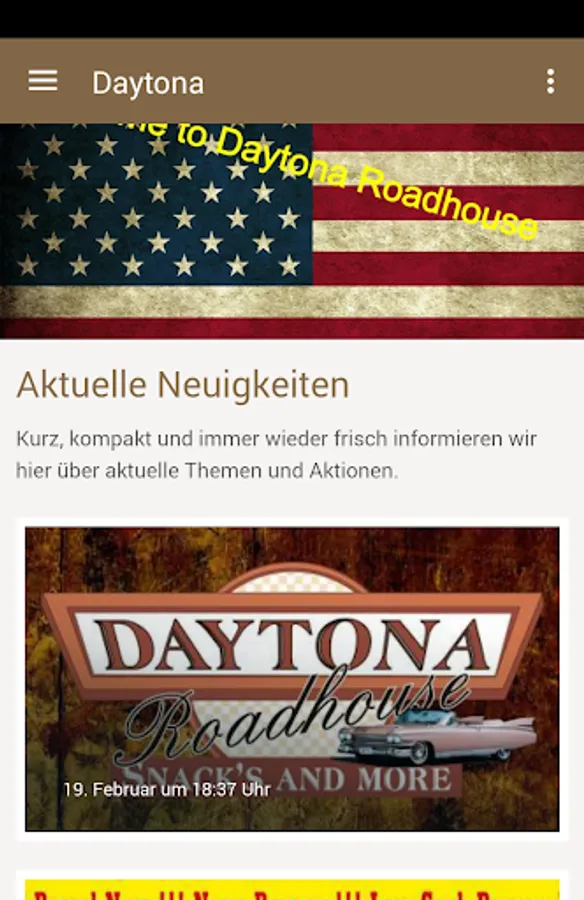Now there is the app for Daytona Roadhouse in Raesfeld. Learn more about our food, drinks and events. In addition, you will receive information about news and events ...
