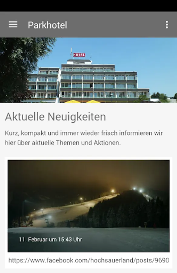 Park Hotel! Now available as an app for your smartphone! With Parkhotel getting all the latest news, photos, events and dates directly into your pocket. The application utilizes push notifications every piece of news comes immediately on smartphone. With the smartphone push of a button, a connection is possible. This app connects people.