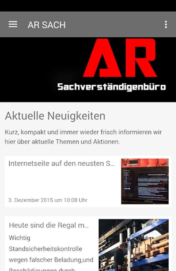 Now there is the AR Sachverständigenbüro from Gevelsberg as official app for Smartphone's! Your partner in matters of occupational safety, training, instruction, UVV testing, CE certification, fire extinguisher training, chain audit, and much more ...