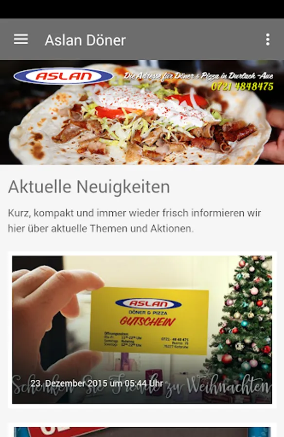 Aslan Döner is now available on your smartphone! All news, photos, events and dates always there. Through the push function, there's all the news directly to your smartphone. Of course, a smartphone is just a phone, so that by pressing a button a connection can be established. This app connects people.
