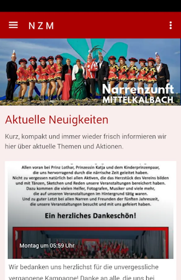 The official app of Narrenzunft Mittelkalbach.Neuigkeiten, photos, events and dates land always right in your pocket. We'll put you on our groups and couples before Prince, reports of our events and performances and to inform you about the hustle and bustle of fools Mittelkalbach. With the app you have a direct line to NZM outside the 5th season.