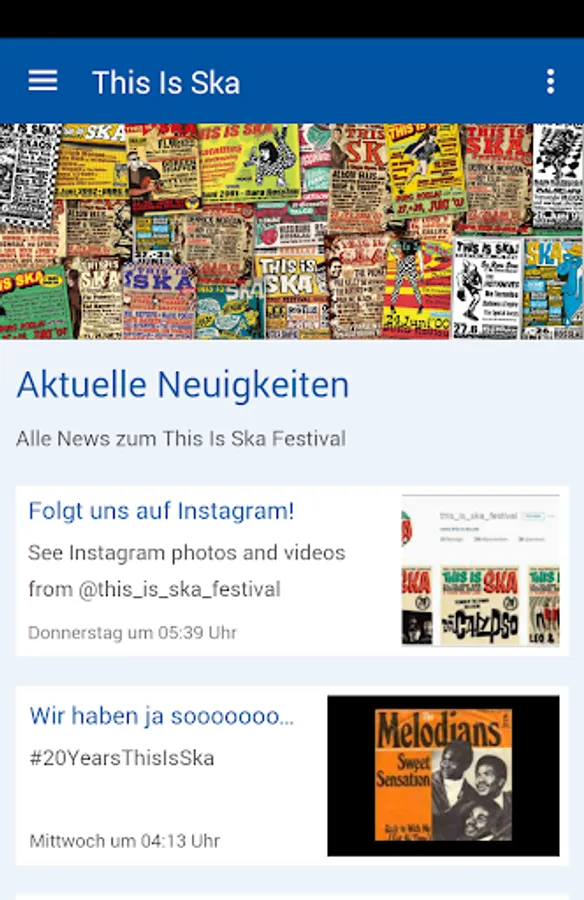 This Is Ska Festival is now available as an app for your smartphone! Stay up to date on his running order, Dates, Photos, Interesting near and news. The application utilizes push notifications every piece of news comes immediately on smartphone. It's never been easier to make a direct connection by pressing a button. This app is the direct line to us.
