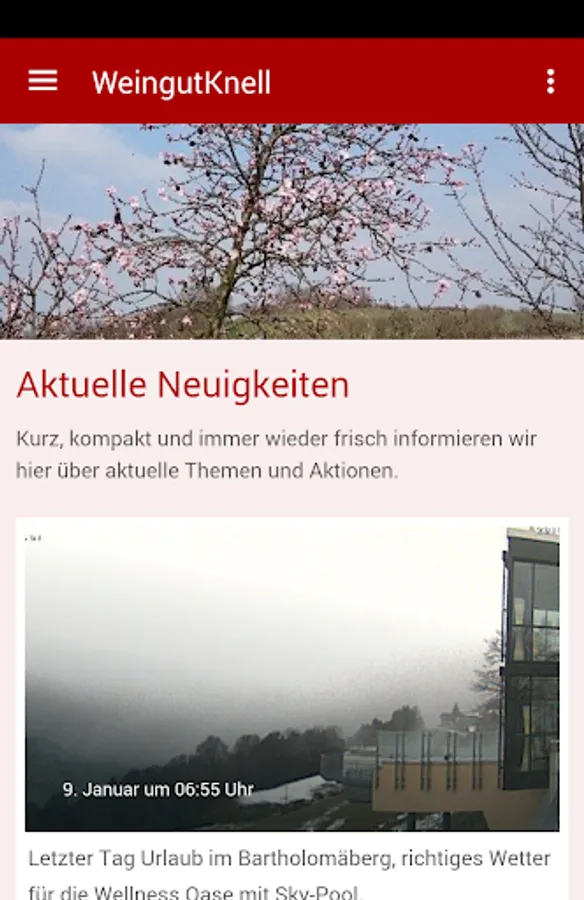 Now there's Vineyard Knell as the official app for Smartphone's! All news, photos, events and dates as land directly in your pocket. Whenever there is something new on your phone's ringing. And because a smartphone is just a phone, can be a button equal to establish a connection. The winery Knell App always provides a direct line.