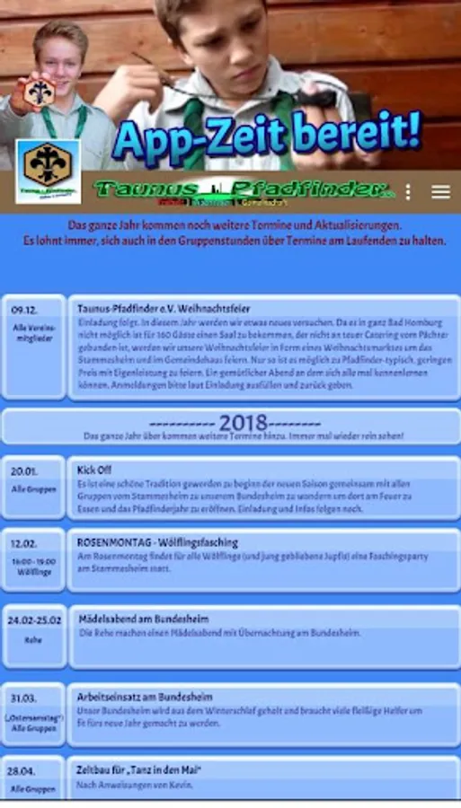 Now there is our official app for Smartphone's! All news, photos and events about the Taunus Scout eV land so directly in your pocket. Don't miss!