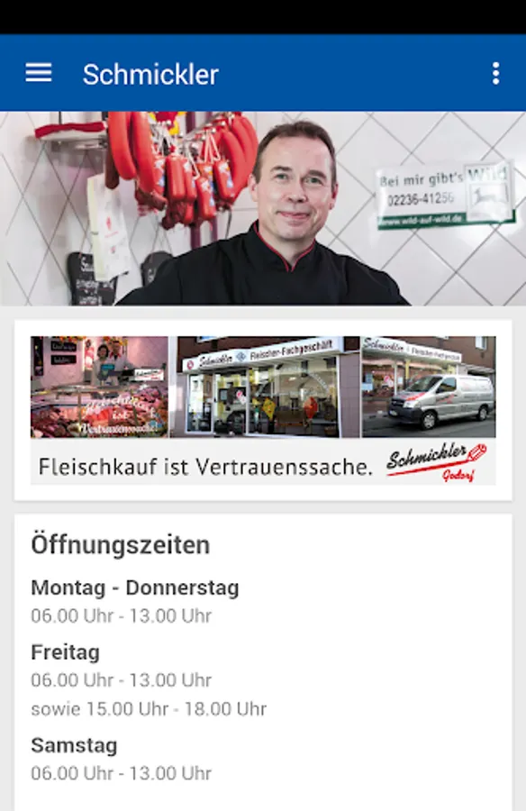 With the app, the butcher Schmickler you get a little insight into the butcher shop. We present here our craft, our catering service and the delicious sandwiches that we can provide you for any occasion. All news, photos, events and dates land thanks to our app directly into our app. If you want, you can be informed on the smartphone, whenever there is something new. And because a smartphone is just a phone, can be a button equal to establish a connection. The Schmickler App always provides a direct line.