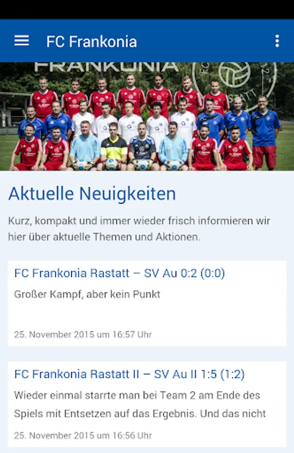 The latest news from FC Frankonia Rastatt any time on your Smartphone! Goals, match reports, current information and pictures of our games.