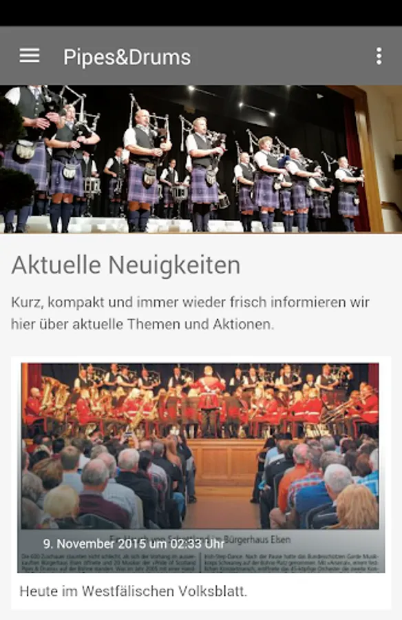 Now there is The Pride of Scotland Pipes & Drums as an official app for Smartphone's! All news, photos, events and dates end up directly into the pocket. Whenever there is something new that's ringing on the smartphone. And because a smartphone is just a phone, can be a button equal to establish a connection. The Pipes & Drums App always provides a direct line.