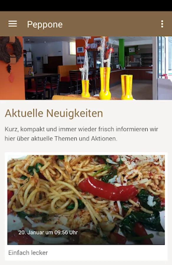 Now there is Peppone as the official app for Smartphone's! All news and photos end up directly into the pocket. Whenever there is something new that's ringing on the smartphone. And because a smartphone is just a phone, can be a button equal to establish a connection. The Peppone App always provides a direct line. The best thing is you can even order it.