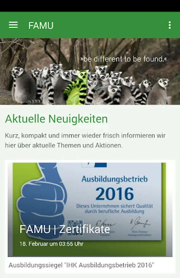 Now there FAMU as official app for your smartphone! All news, photos, events and dates land so directly in your pocket. Whenever there is something new, it rings on your phone. And because a smartphone is just a phone, a button can be equal to establish a connection. The FAMU app always provides a direct line.