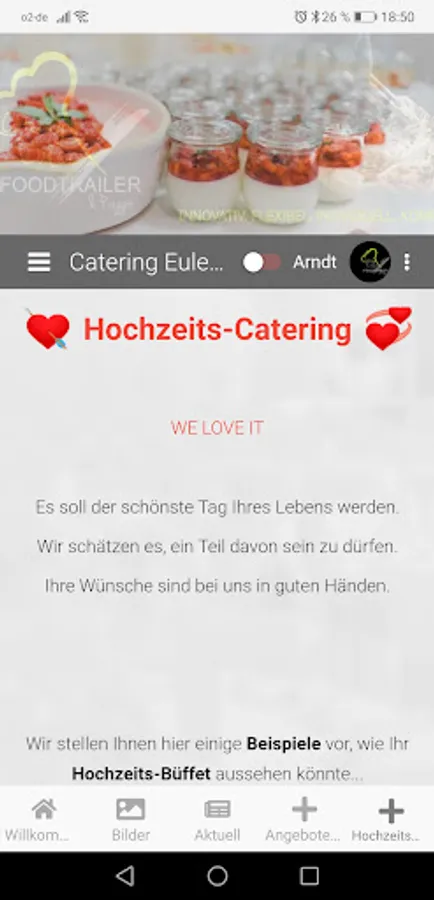 Dabei übernehmen wir alle Gastronomischen Leistungen von der Zusammenstellung des Menüs oder Büffets, über die Gestaltung, bis hin zu allen logistischen Leistungen und Personal. Ob Taufe, Geburtstag, Hochzeit, Kommunion, Konfirmation, Firmenjubiläen , BBQ mit unserem Food Trailer und Event Piaggio, Weihnachtsfeiern oder andere Anlässe. Vertrauen Sie unserer langjährigen Erfahrung.