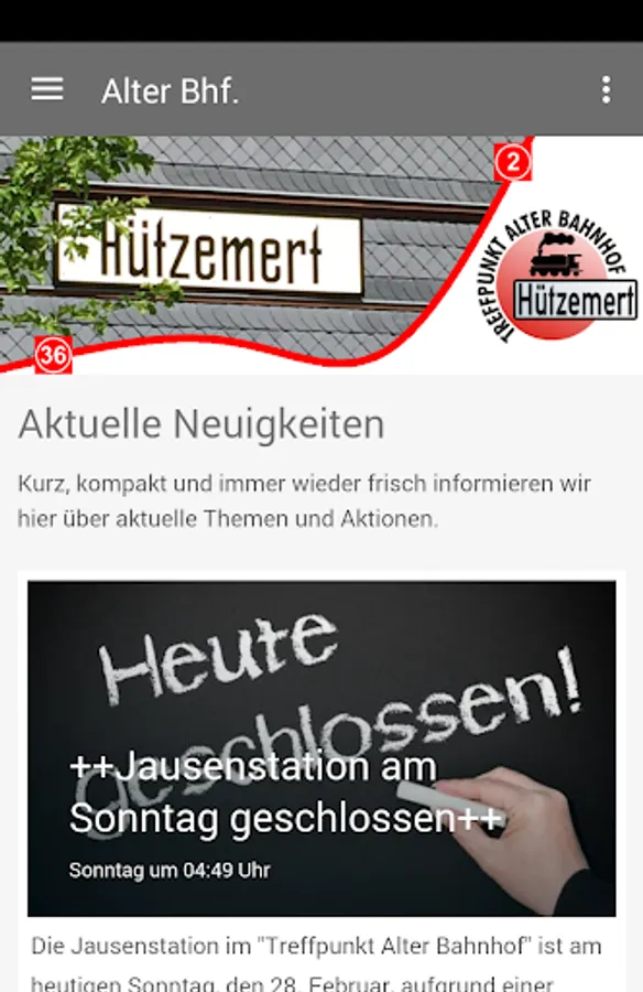 Now is the "Old Station" as official app for Smartphone's! All news, photos, events and dates land so directly in your pocket. Whenever there is something new on your phone's ringing. And because a smartphone is just a phone, can be a button equal to make a connection. The age Bhf. App always provides a direct line.
