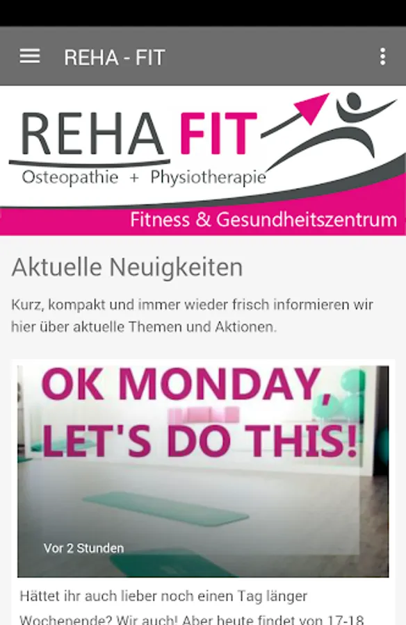 The RehaFit of Korbach offers its members in addition to the latest news and many important appointment information directly to your smartphone.