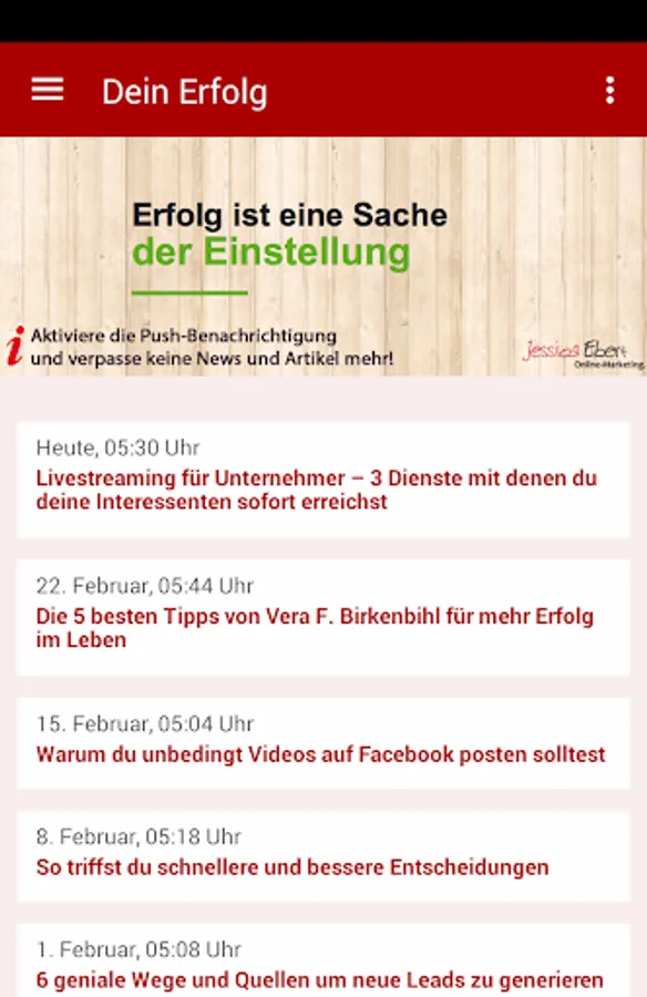 Now there is your success in online business as an official app for Smartphone's! All news, photos, events and dates end up directly into the pocket. Whenever there is something new that's ringing on the smartphone. The success of your app always provides a direct line. Do not miss any news, tutorials, articles and videos! Build your online business on.