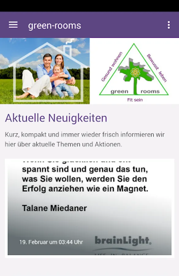 With the greenrooms App you will receive practical and current advice and information about products, services and events around the following topics: "healthy living", "Be Fit" "conscious living", lifestyle, relaxation, stress reduction for free directly on your smartphone.