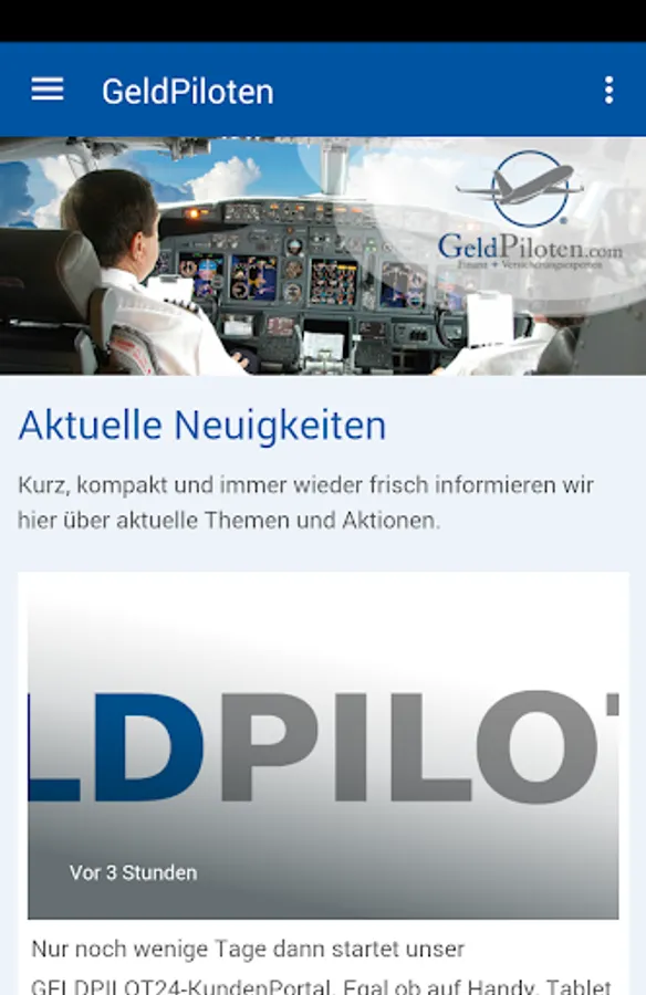 Now there is money pilots as the official app for Smartphone's! All news, photos, events and dates end up directly into the pocket. Whenever there is something new that's ringing on the smartphone. And because a smartphone is just a phone, can be a button equal to establish a connection. The money pilots App always provides a direct line.