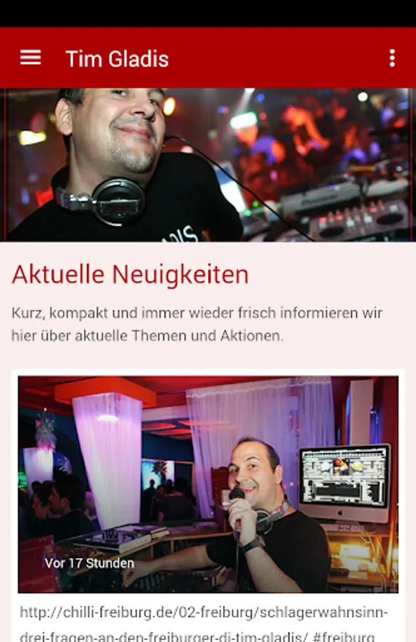 Now there is Tim Gladis as the official app for Smartphone's! All news, photos, events and dates end up directly into the pocket. Whenever there is something new that's ringing on the smartphone. And because a smartphone is just a phone, can be a button equal to establish a connection. The Tim Gladis App always provides a direct line.