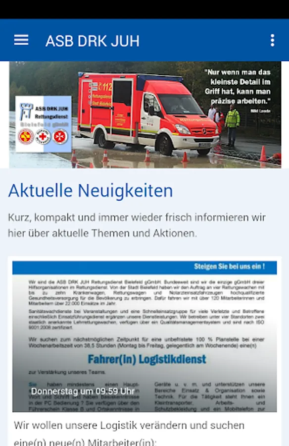 That's not it? But: Now there is the ASB DRK JUH Rescue Service Bielefeld gGmbH as official app for Smartphone's! All news, photos and events will instantly in the handbag or pocket. Whenever there is Anytown's ambulance service company something new ring's on the smartphone.