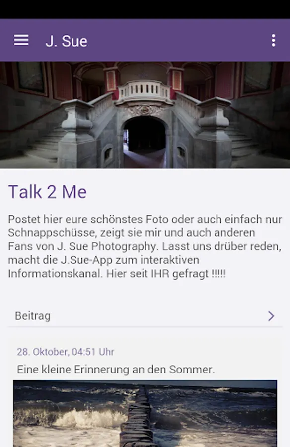 Now there's J. Sue as the official app for Smartphone's! All news, photos, events and dates end up directly into the pocket. Whenever there is something new that's ringing on the smartphone. And because a smartphone is just a phone, can be a button equal to establish a connection. The Sue J. App always provides a direct line.
