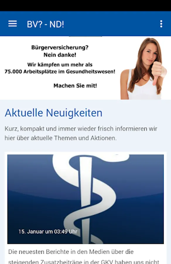 Now there are "citizens' insurance? No thanks!" as the official app for Smartphone's! All news, photos, events and dates end up directly into the pocket. Whenever there is something new that's ringing on the smartphone. And because a smartphone is just a phone, can be a button equal to establish a connection. The "citizens' insurance? No thanks!" App always provides a direct line.
