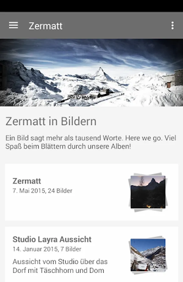 Here you can get all information about Zermatt, our apartments in Zermatt, current traffic and news easily as push message.