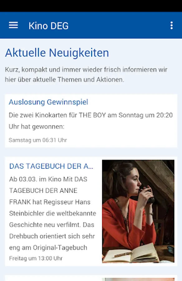 Now there is cinema DEG as an official app for Smartphone's! All news, photos, events and dates end up directly into the pocket. Whenever there is something new that's ringing on the smartphone. And because a smartphone is just a phone, can be a button equal to establish a connection. The cinema DEG app always provides a direct line.